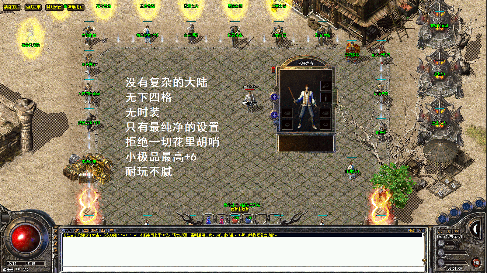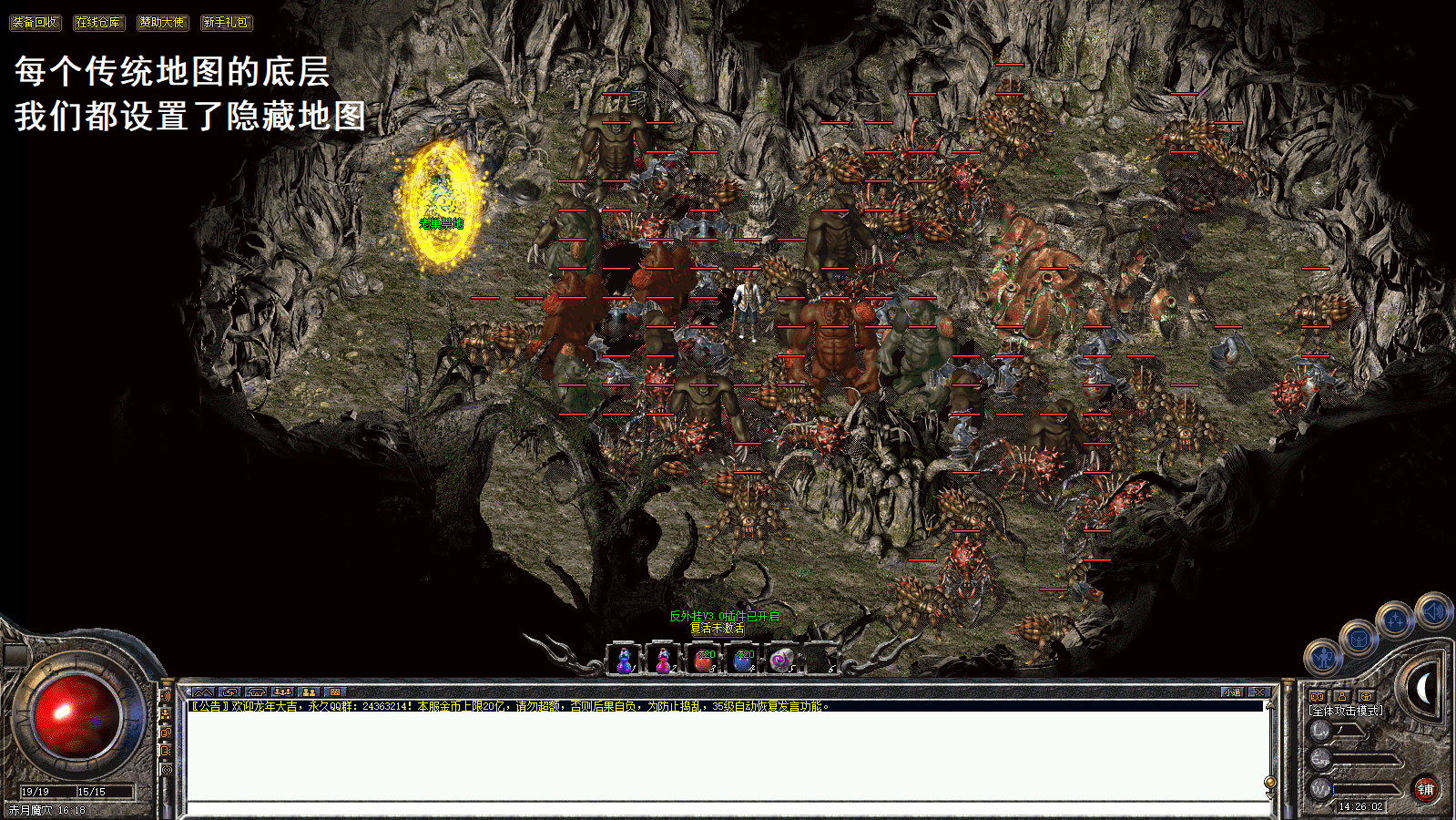 本服为复古版本!没有复杂大陆!爆率低!不是三天的激情服!没耐心的玩家不要进来!